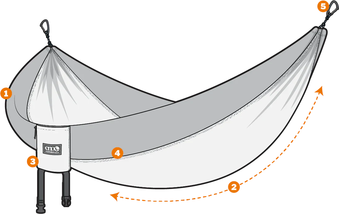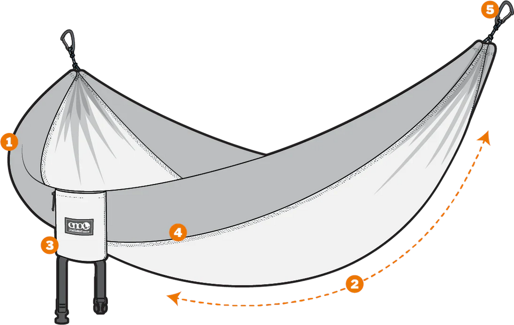 Adjust hammock and suspension system to reach a hanging height of 18in (45cm) or less from the ground. Gently lower yourself into the hammock and relax...