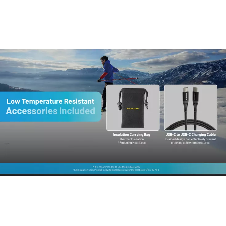 Nitecore Summit 10000 Includes: insulation carrying bag and USB-C to USB-C charging cable.